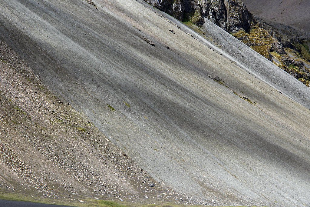 The morning was warm and calm as we rode out of Mordor into a gorgeous coastal landscape at the southern end of the East Fiords. The road and its setting reminded us a bit of The Cabot Trail in Cape Breton Island where we cycled in 2005. The road hugs the coast with mountains rising steeply from its other edge, and it has a gentle rolling quality to it, going up and down but never with very steep inclines.