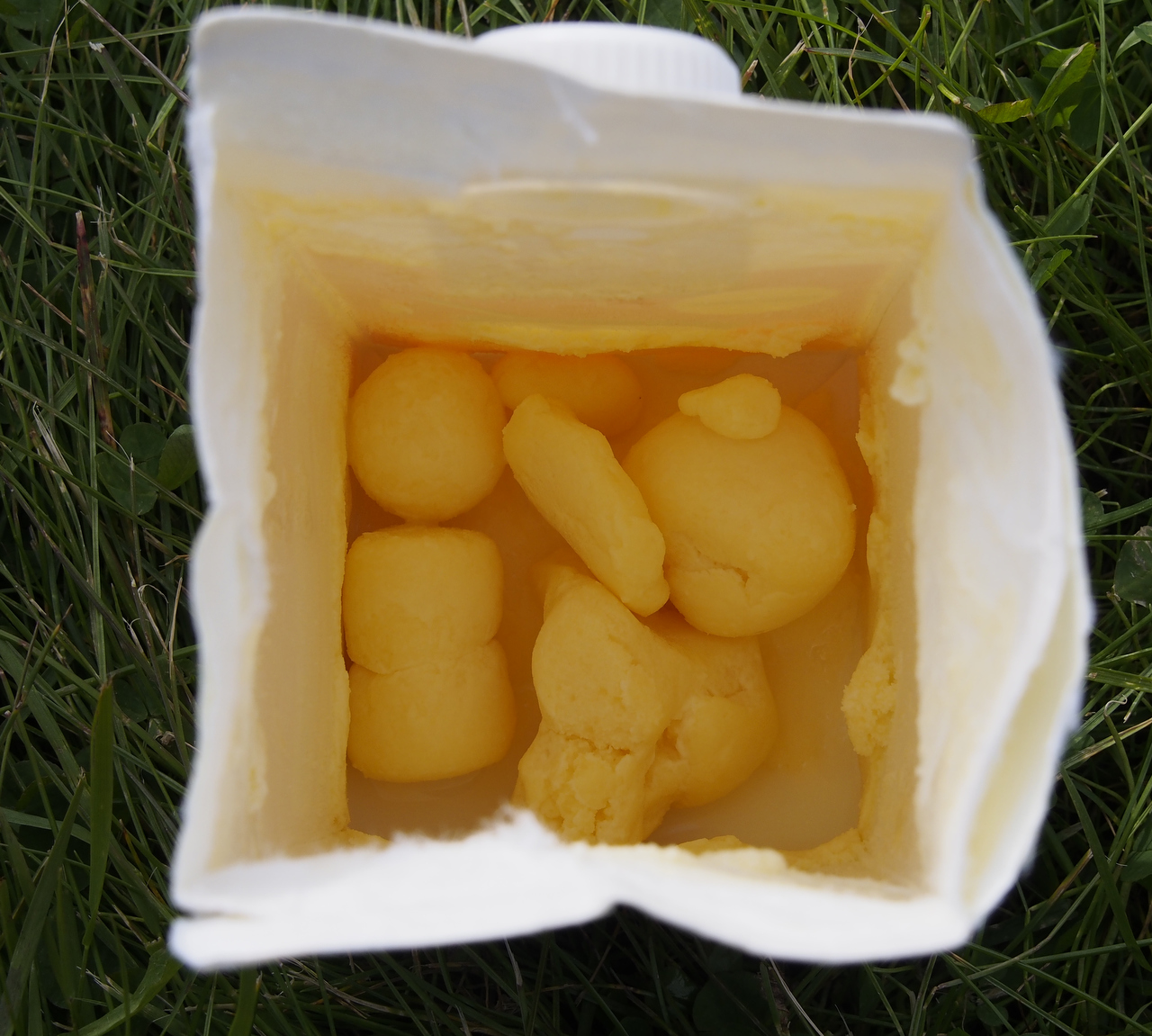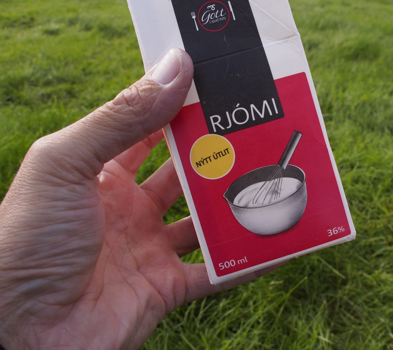 Powdered milk is not available in Iceland. We’ve looked for it everywhere but to no avail. Only baby formula and breast milk substitute is available but despite my love of a good breast, that did not appeal to us. So, to save weight and bulk we decided to buy two 500 mL containers of whip cream instead of 2 litres of milk for our breakfasts. The whip cream containers came with a handy screw-top cap so they could be resealed and would not spill their contents in our panniers.