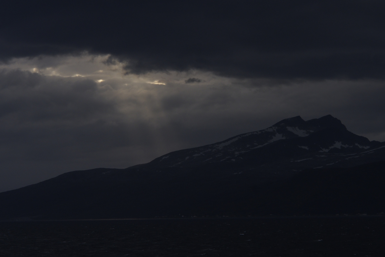 We boarded the Hurtigruten ferry in Tromsø’s harbour at 6.30 PM. This ferry service runs the length of Norway from Bergen in the south to Kirkeness in the north near the Norway-Finland-Russia border. Its fleet of ships sails every day. Our trip to Honningsvåg would take 16 hours. Kind of a mini cruise. We did not opt for a cabin – too expensive – as we figured we would find a place to sleep somewhere. The ferry cost 2318 NOK ($412). To plan your own cruise, here’s a link to the Hurtigruten: www.hurtigruten.no