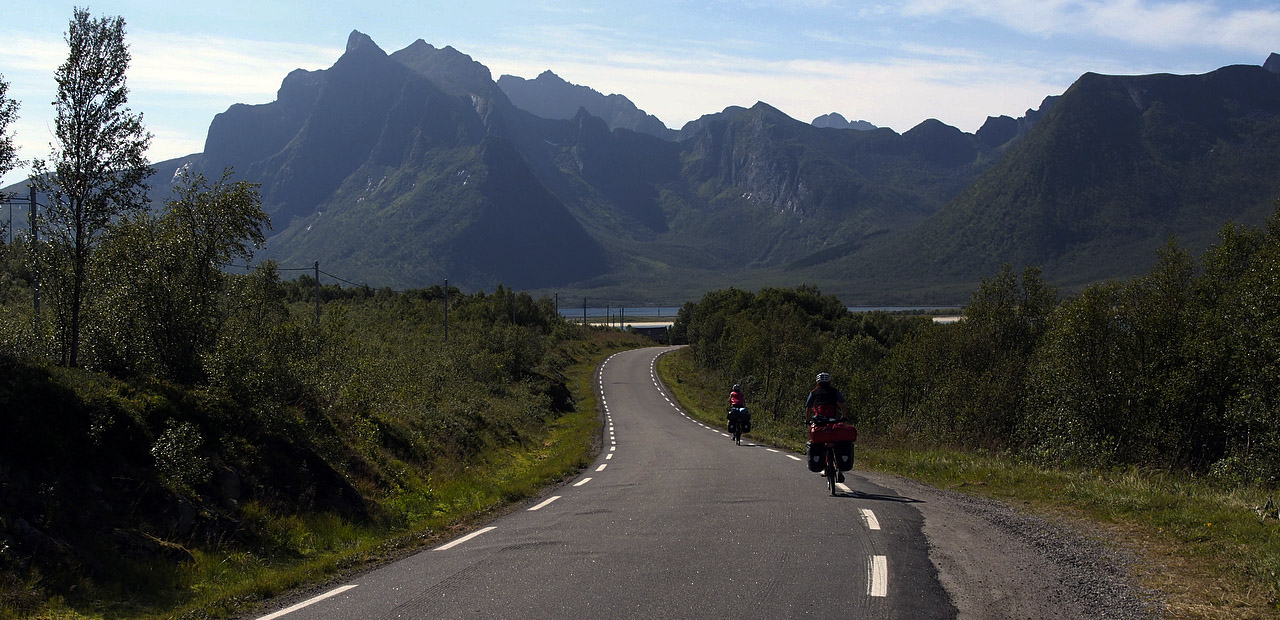 With Alba and Gérard we retraced our route from Harstad to Sortland in Vesterålen and have made our way into the Lofoten Islands. The cycling has been wonderful on quiet back roads. We try to avoid the major highways if we can. The scenery here is quite stunning. Here’s a taste. Stay tuned.