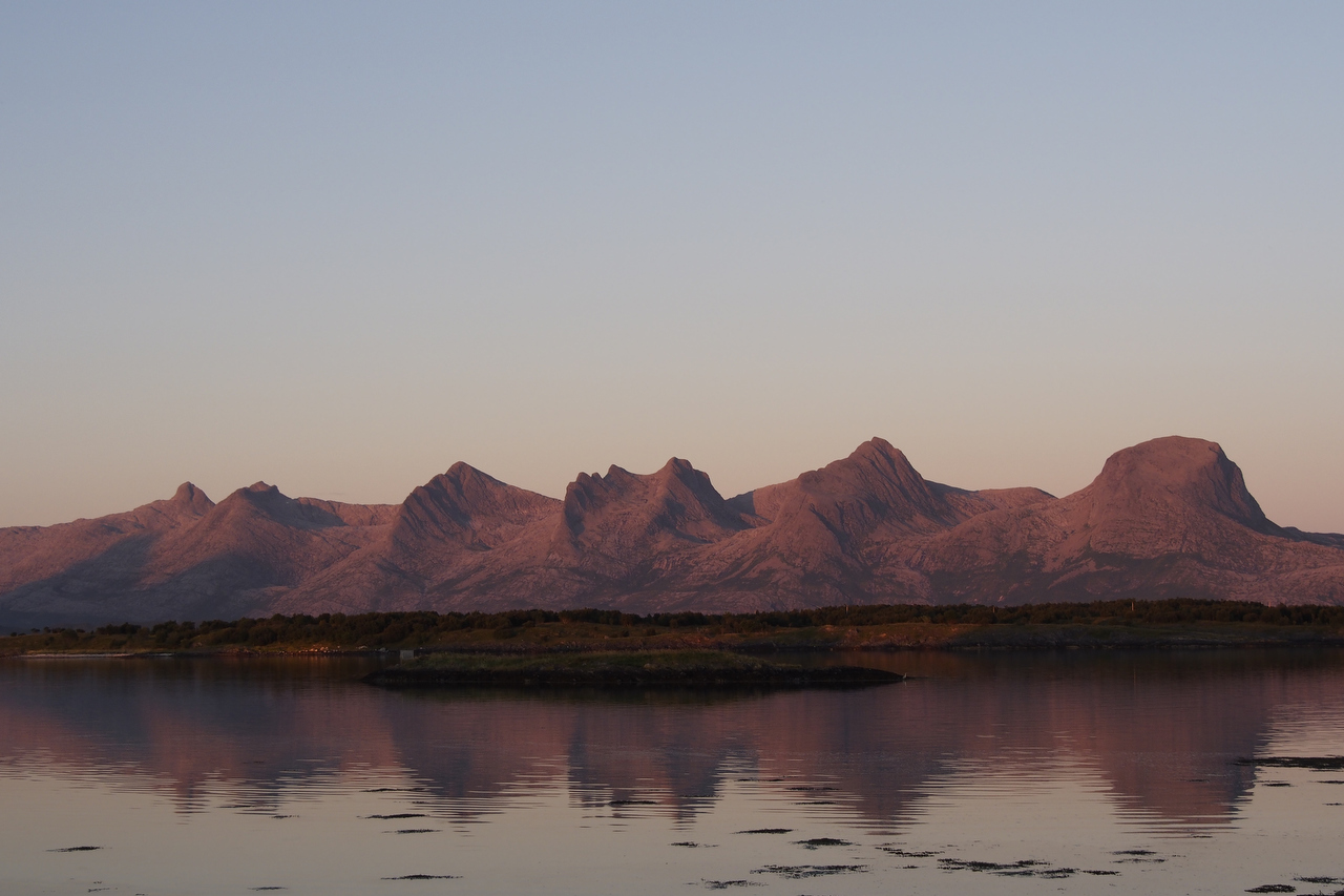 We crossed the Arctic Circle on the ferry from Jetvik to Kilboghamn and after more than two months of constant daylight, both here and in Iceland, we are now experiencing a phenomenon called darkness. It’s quite amazing how quickly this has happened as the combination of dropping below 66 degrees and the advancing days of summer have made the days shorter. Still, the sun now sets at 10 pm and rises again at 4.45 am. I think we are going to have to dig up our head lamps from the bottom of our panniers.