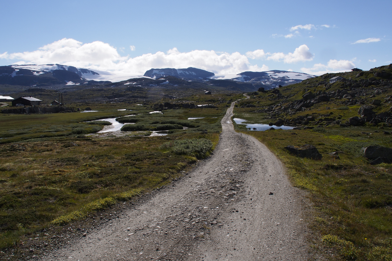 It begins at 1,000 metres above sea level, climbs up to 1,343 metres before descending all the way down to sea level at Flåm on Sognefjord. The road goes over the Hardanger plateau, skirting the Hardanger Glacier. It is an amazingly scenic route. A bit rough in places, but a pure joy to cycle.