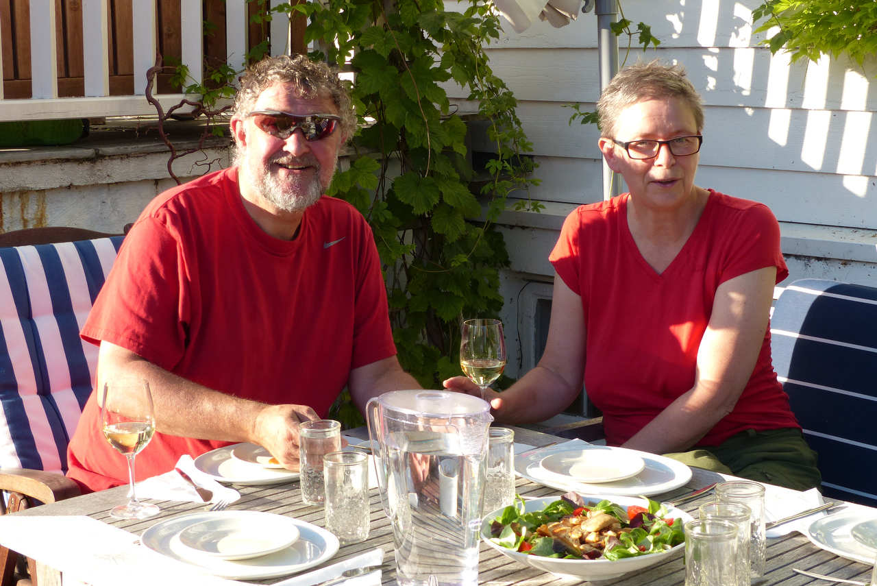 While Jan and I tinkered with our bikes, with Jim’s generous help, Alba and Gérard went shopping for the night’s dinner. By the time Jan, Jim and I got back to Helle and Jan’s home, dinner was nearly ready and Jan had selected the wine. Alba and Gérard put together a fantastic dinner.