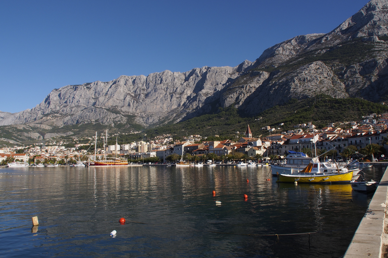 Going south, the scenery became increasingly beautiful. On one side, the mountains running parallel along the coast loomed overhead while the bright blue Adriatic sparkled on the other, as the road snakes through olive groves and small villages. Off shore, the island of Brač and Hvar filled the horizon.