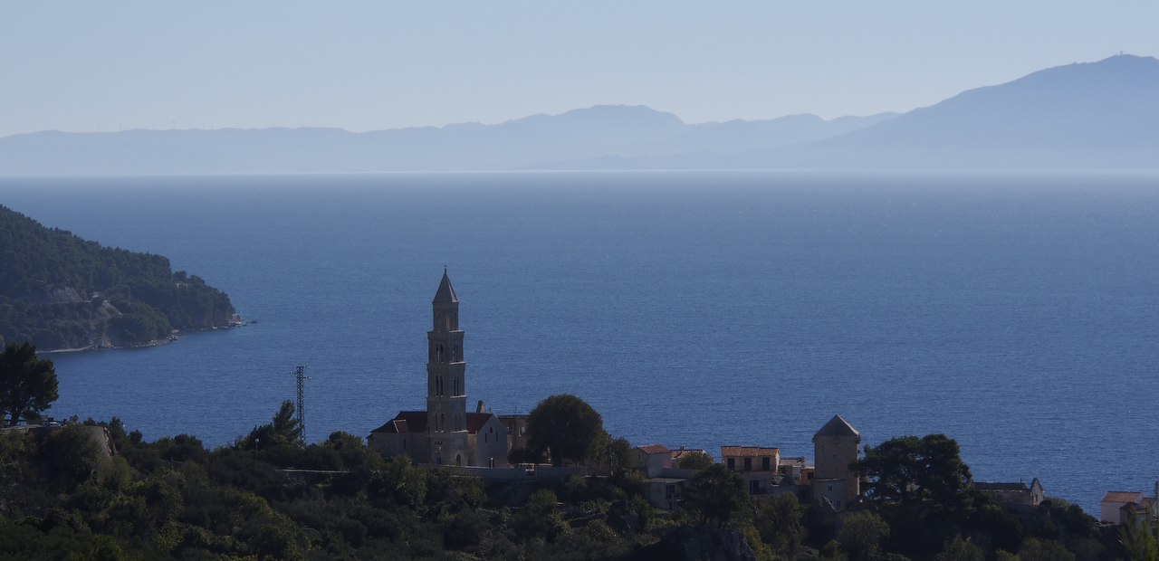 From Orebič, we had found a route along the west coast of the peninsula that was rumoured to be passable on the bicycle. The first section to Podstub was along the same road we had taken to come into the town, route 414. From there we dropped down toward the water instead of heading up into the pass where route 414 continues to run down the spine of the peninsula.