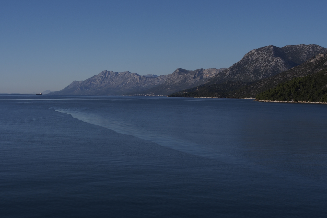 The hour-long ferry ride over to Trpanj gave us a great view of the mountains we had been cycling alongside all the way from Split for the previous two days. Once on the other side, we didn’t waste any time as daylight was waning and we still had 20 KM to go over a mountain pass to Orebić where we had rented another little apartment.