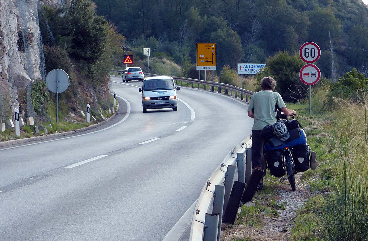 Pushing along a track to get from the old road onto the highway out of Dubrovnik.