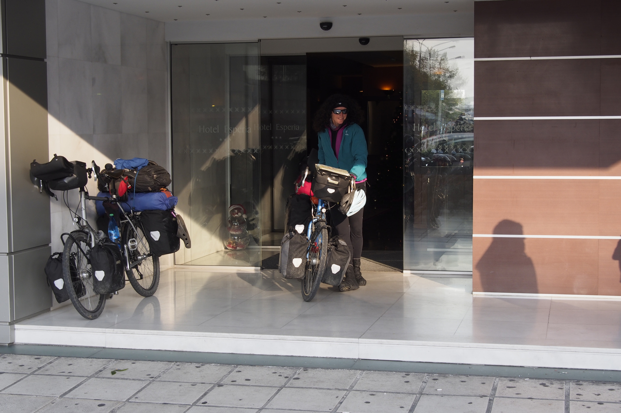 The days are short and cold as we’re sliding toward the winter solstice. If we get up early enough and get moving quickly enough, we can manage 80-90 KM but that also depends on the terrain. If it’s hilly at all, our daily mileage drops dramatically. The route east along the Aegean Sea is relatively flat and we managed to push on 94 KM to Kavala, a medium-sized city where we found a lovely hotel in the centre of that city.