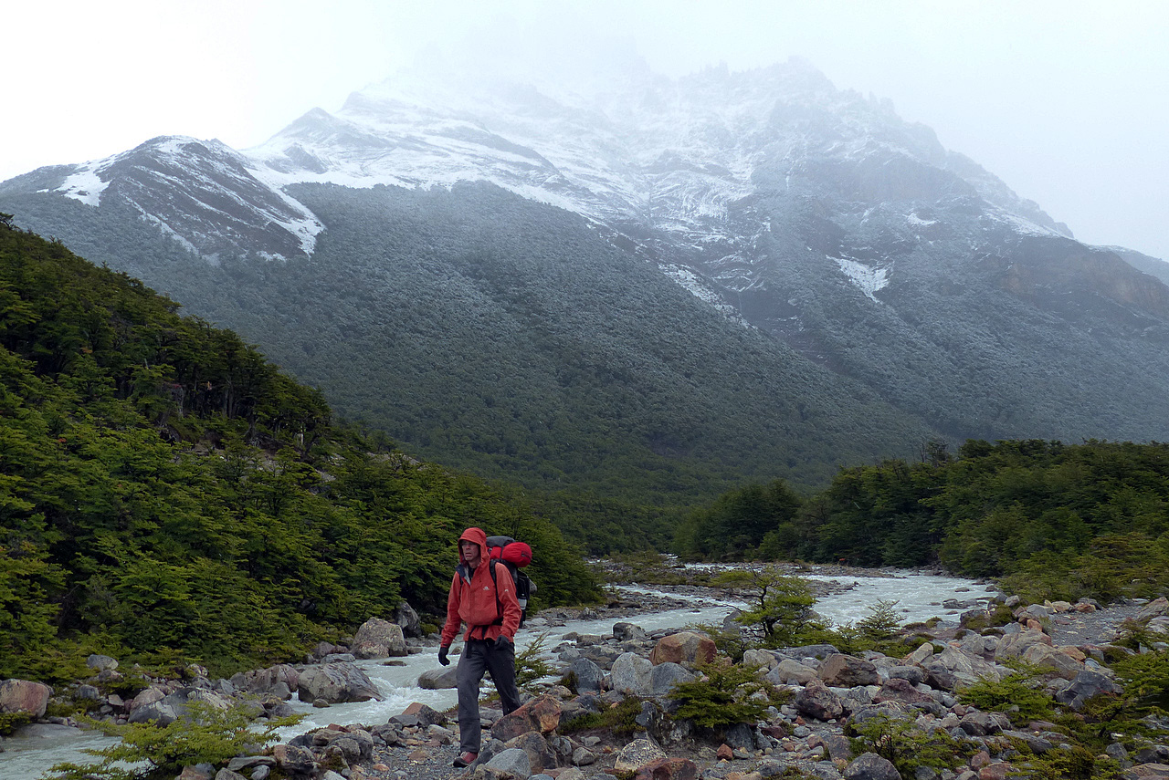 That all changed overnight as winter arrived. Snow coated the mountains all around just above camp and it was snowing lightly while we made breakfast. Again, no lingering. We were back in El Chaltén for lunch. The sun was shining and it was like a different world only 250 metres lower in elevation. All in all, though, it was a great hike despite the cold and wind.