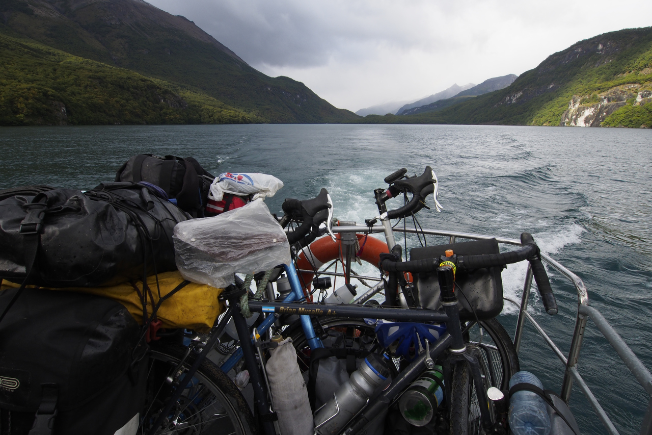 The weather was the deciding factor pushing us out of town a day earlier than we had planned. It was Sunday afternoon and the wind was at a moderate 25-30 km/hr from the north-northwest. The forecast for Monday was 50-60 km/hr. We left that afternoon at 3 p.m. for the 35-kilometre ride north to Lago del Desierto and the first boat ride.