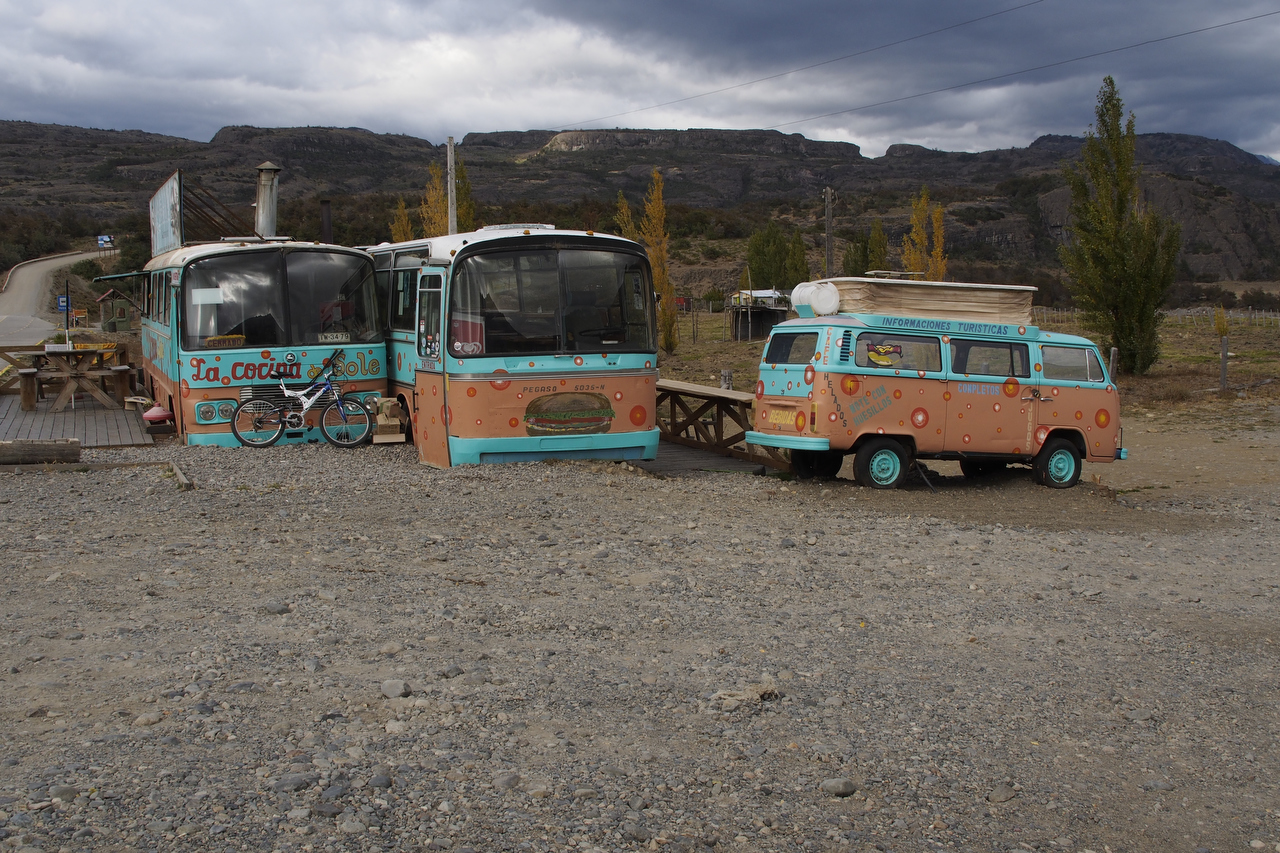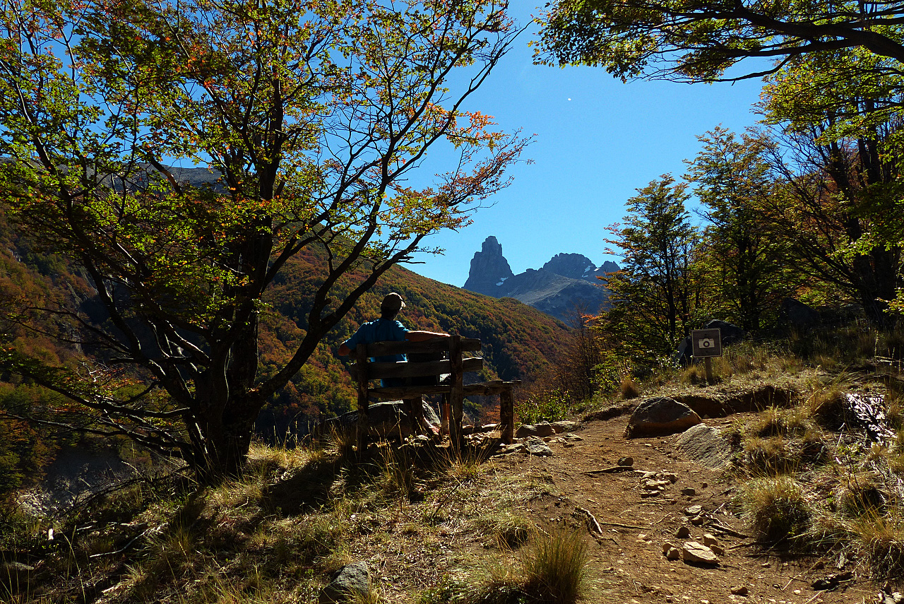 The road climbing up from Villa Cerro Castillo winds through a mountain pass at just over 1,100 metres above sea level, the highest pass we’ve crossed so far in South America. Fall is in full swing at the higher elevations and the reds and yellows stand out vividly against the different brown hues of the mountains. We met a couple of French cyclists with whom we had lunch just down from the pass.