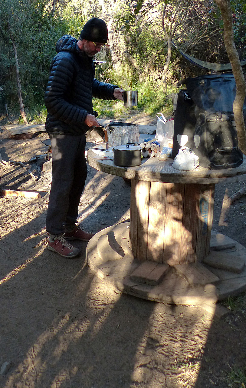 We were exhausted. We bought some ice cream to celebrate, along with bananas, eggs, beer, wine, avocado and, amazingly, fresh lettuce and tomatoes. That night, we had a salad, followed by meat ravioli with a mushroom cream sauce, washed down with red wine. We collapsed in our tents for the usual 10 hours of sack time.