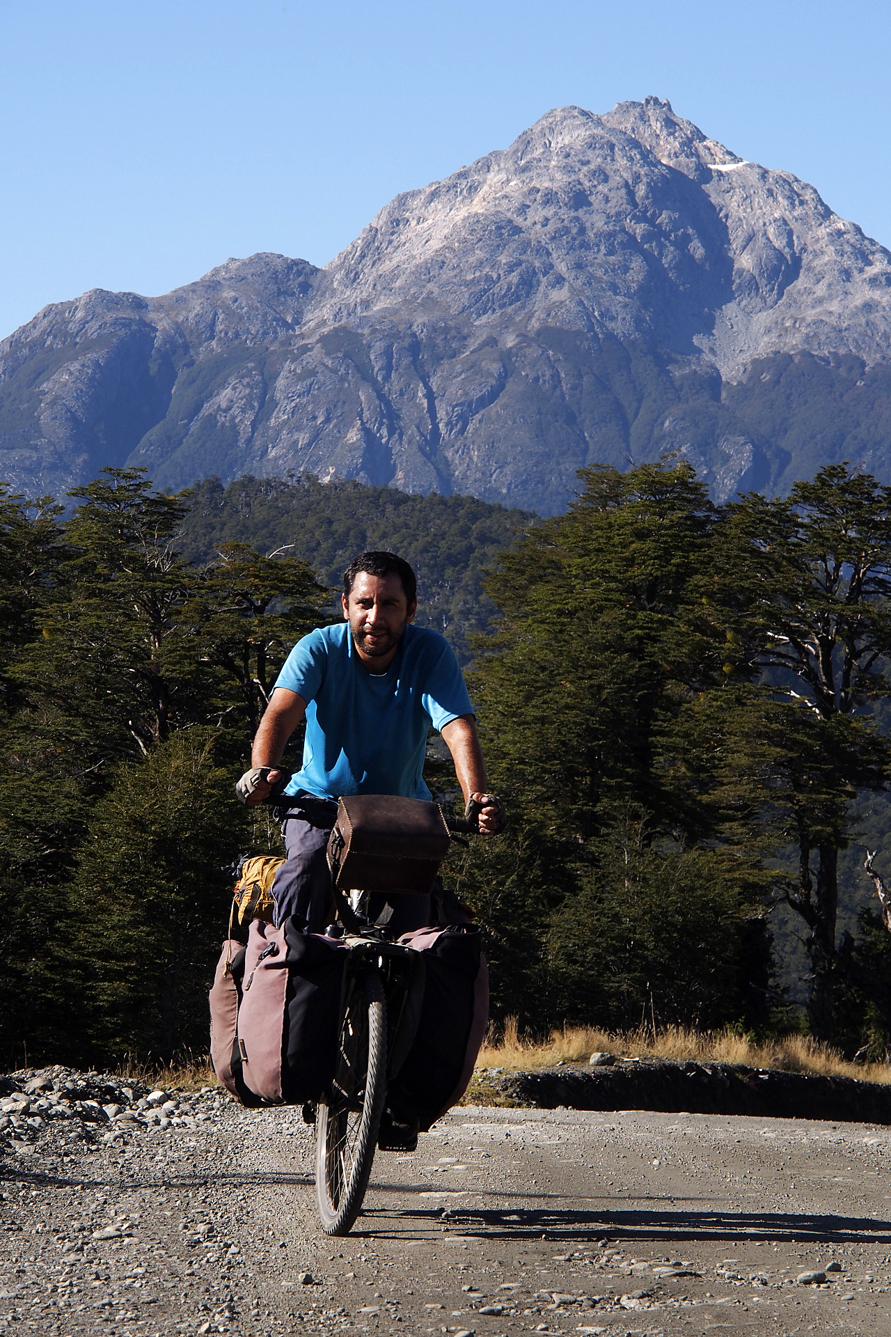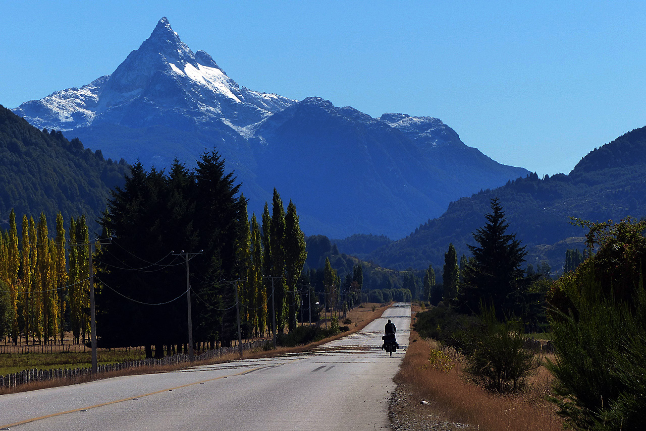 After our three-day hiatus in Coyhaique we were well rested, had clean clothes again and were supplied with an abundance of food. It was another brilliant day. Brian had left the day before and we would try to catch up with him on the road. Climbing out of Coyhaique was a bit of a chore as the road runs up for nearly four kilometres to a bench on the north side of town.