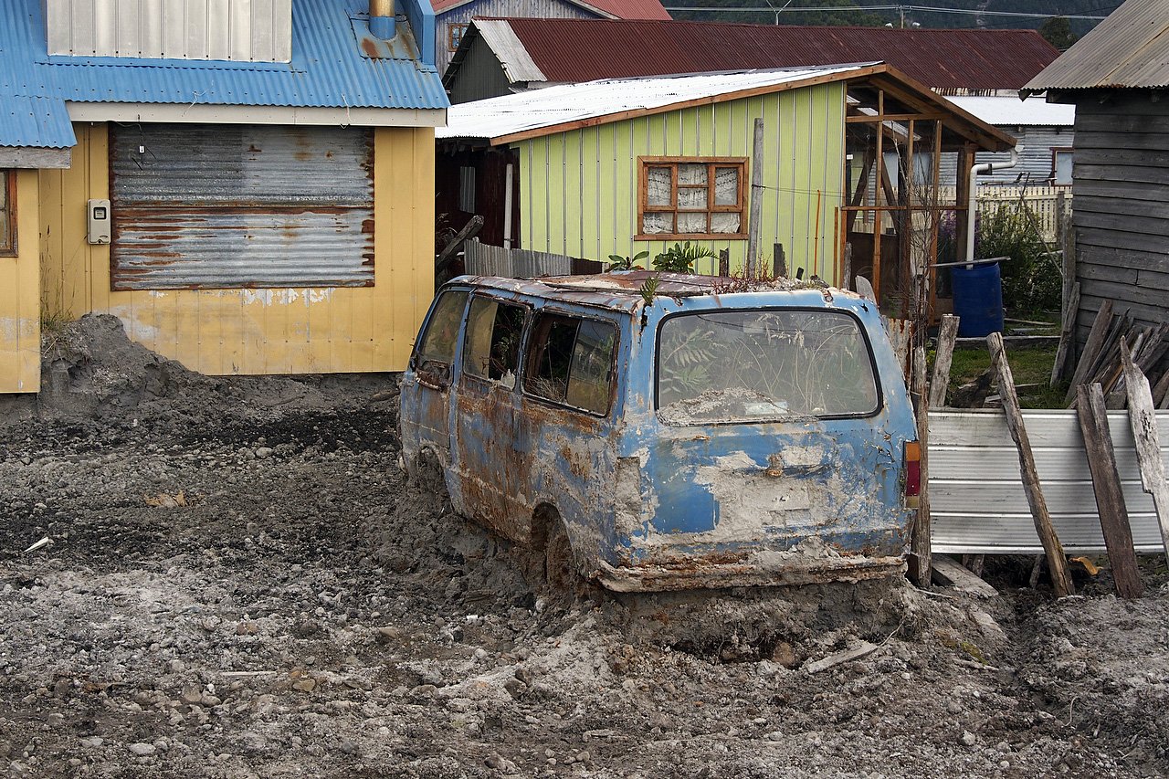 Chaitén was severely damaged in 2008 when Volcan Chaitén erupted. The eruptions continued into 2009. People have moved back to Chaitén and have begun to restore the town but the volcano, only 10 km from the town, can be seen smouldering on the horizon. There is still a lot of evidence from the eruption as many buildings were destroyed and more than a metre of ash was deposited on the town.