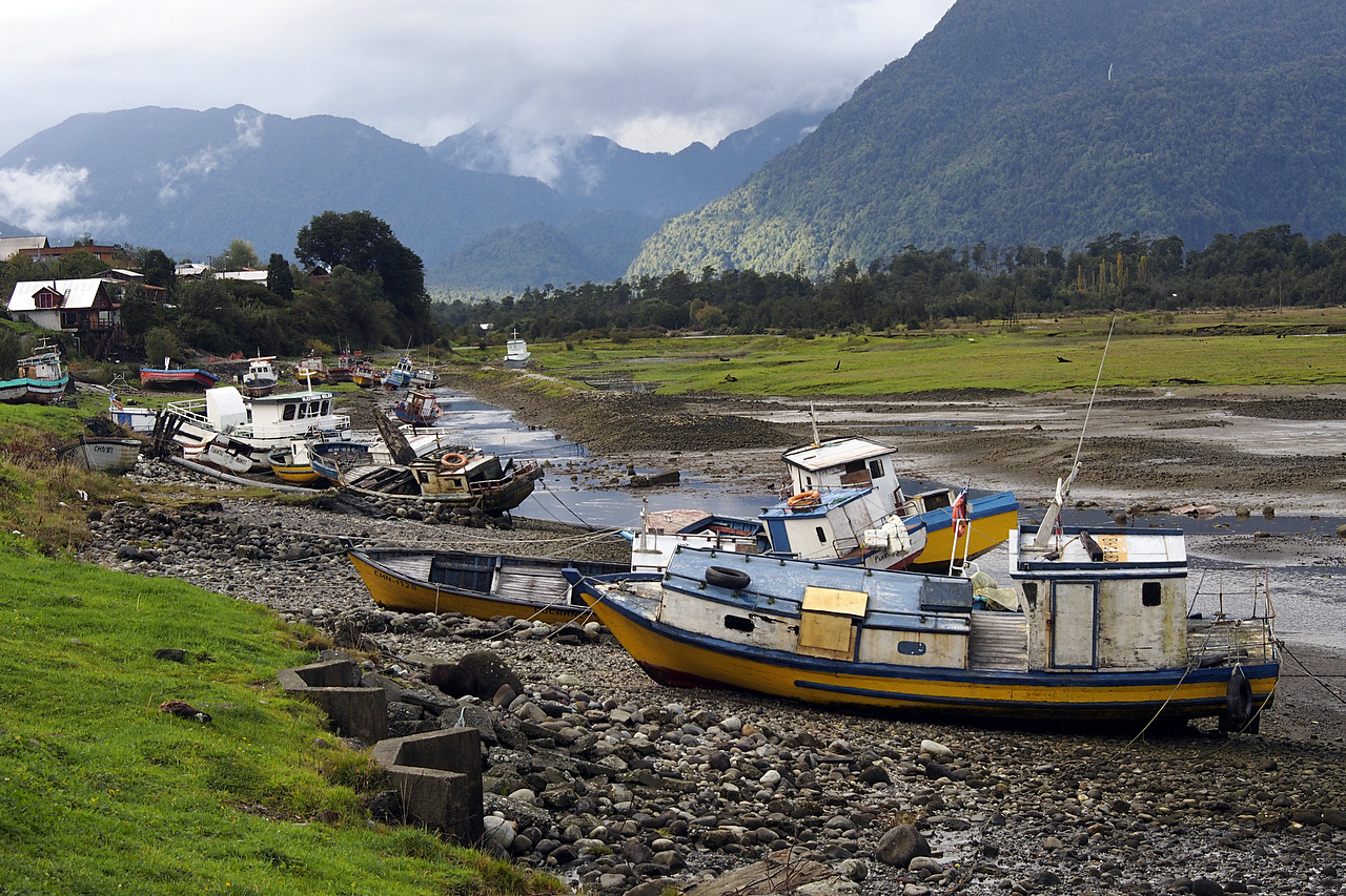 The three of us cycled over the pass just north of Santa Lucia. It was quite a day that began with an 8.5 km climb right from town but once over the pass we had essentially a 72-kilometre-long downhill run all the way to Chaitén with the final 48 km on beautiful, smooth pavement through Pumalin National Park, another of Kris and Doug Tompkins’ private parks in Chile. Hector decided to continue on a bit more so he would be able to cycle to catch the ferry the next day at Caleta Gonzalo. We stayed and rented a cabaña in Chaitén.