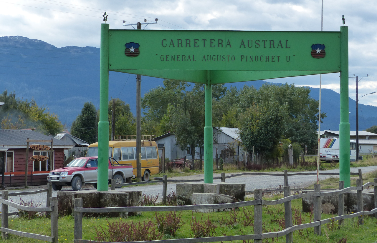 From La Junta on, the Careterra was under construction for about 50 km. The conditions were awful for cycling. The road had been made much wider to accommodate two lanes of asphalt but the surface was covered with fist-sized rocks, making it very difficult to cycle. This along with the dust from passing traffic and construction trucks made for very unpleasant conditions all the way to Villa Santa Lucia. The final 10 or 15 km to Santa Lucia were paved but for some reason the pavement ended at the southern limit of the town, leaving a dusty, bumpy, pot-holed track going through this little town that is a crossroads for travellers heading to and from Futealufu and a border pass with Argentina.