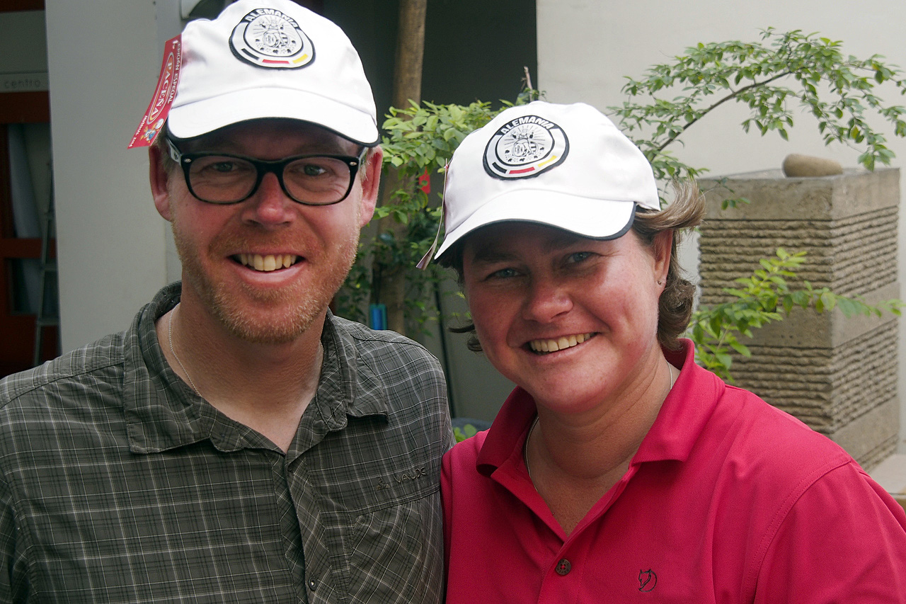 Ellen and Elmar with their Alemania caps. We’ll do anything for free beer.