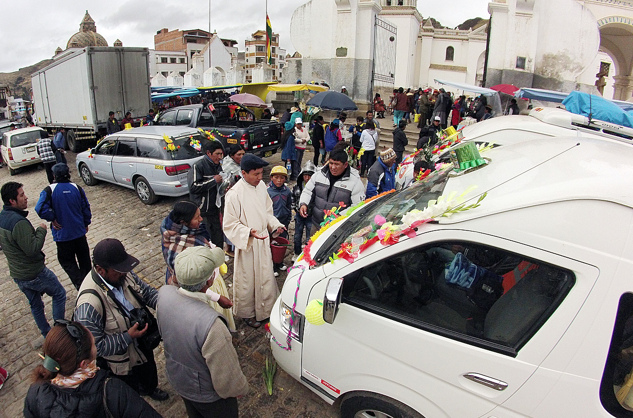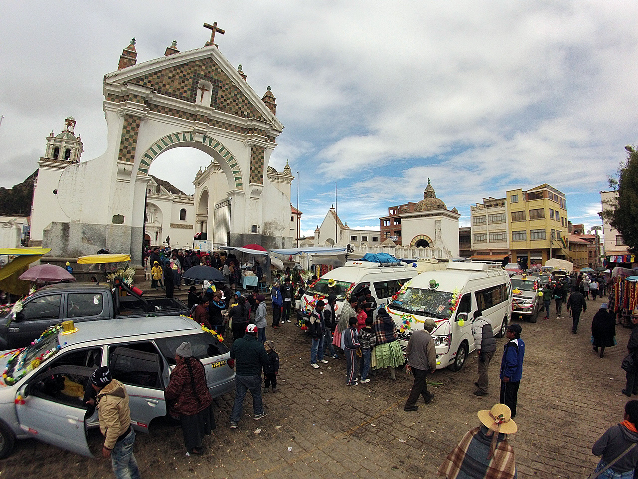 Because of illness, we spent more time in Copacabana than we had planned or wanted, but what are ya gonna do. There was lots of entertainment in the form of masses of Peruvians with new cars in town. The reason: to have their vehicles blessed by the priest at the Cathedral of the Virgin of Copacabana. Cheap insurance, I guess.