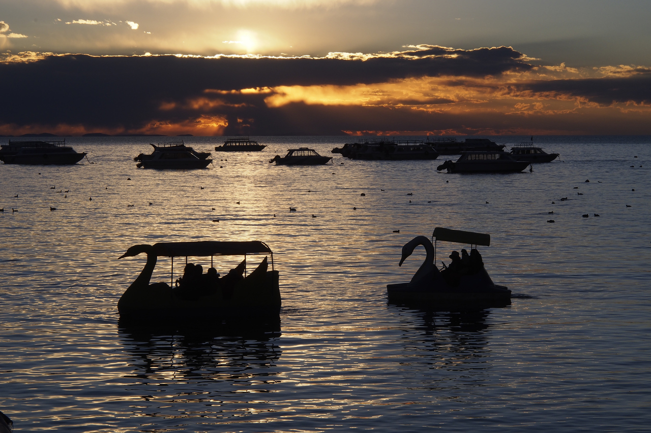 Two days, a scary ferry crossing and yet another mountain pass over 4,200 metres later, we arrived in a very busy Copacabana. Ellen and Elmar took a bus the second day because Ellen’s bout with Montezuma’z revenge recurred. They arranged a hotel for the four of us and we were reunited in the afternoon.