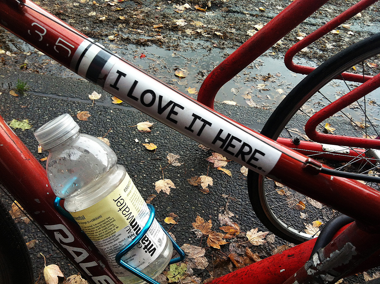 Walking along Main Street to go for dinner with some friends the other day, I saw this bike parked in a rack. It made me smile as we walked past but after a few steps, I stopped and turned back to take this photo.
