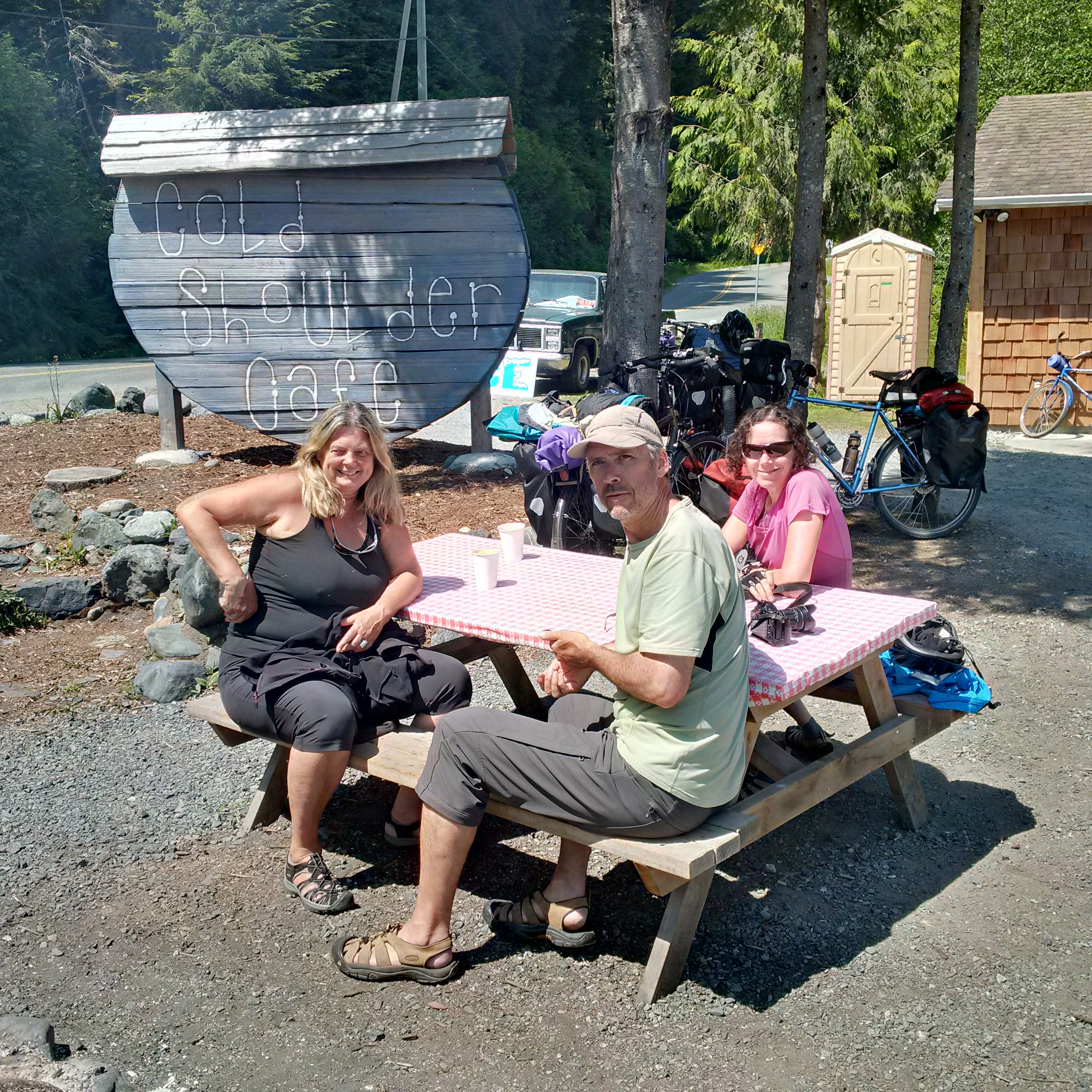 There were lovely views of a mist-covered Strait of Juan de Fuca with the peaks of Washington’s Olympic Peninsula looming on the southern horizon as we cycled the next 40 kilometres on rolling terrain down to Jordan River back down to sea level. It is a lovely piece of road with a nice opportunity for a snack or lunch at the Cold Shoulder Café at the end of it.