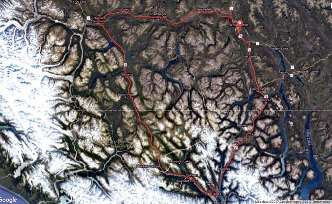Better late than never. I suppose. Laziness on my part (and I must have had better things to do) has delayed this post by a few months. OK, eight months. After paddling the Yukon River from Whitehorse to Dawson City, we flew back to Whitehorse and got on our bicycles. We rode what is known as the Golden Circle Route from Whitehorse to Skagway, across by ferry to Haines and back to Whitehorse.