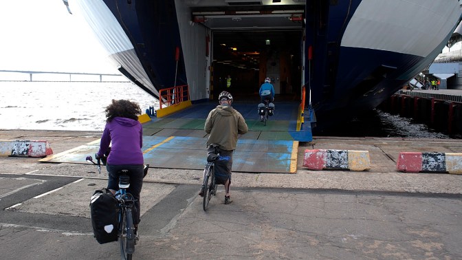Next day: assemble the bicycles and go for a ride around town with Lindsay, making sure the bikes are functioning properly. Pack a bag, meet Frank at his office and ride to the St. Petersburg Line ferry terminal in downtown Helsinki.