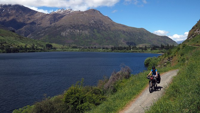 We figured out a route from Queenstown. Not much to figure, though, as there is just one road going north to the west coast: Crown Range Road which connects to State Highway 6 running north along New Zealand’s west coast. There is a cycle route on paths and small roads to Arrowtown and from there a mountain bike track leads us up to a gravel road that connects to Crown Range Road.