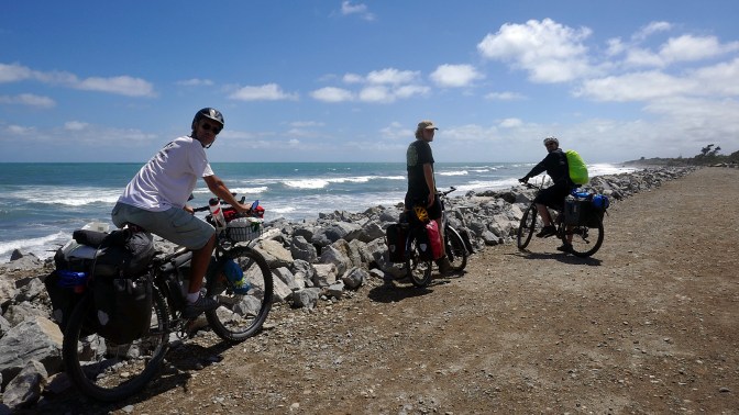 We’ve met another cyclist along the way. Heiko is from Germany and he’s cycling some routes he wasn’t able to cycle on previous trips, and the four of us continue north to Ross where we pick up the West Coast Wilderness Trail.