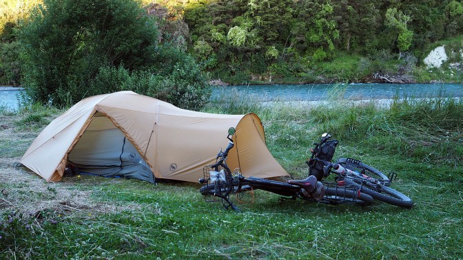 We spend the evening with a couple travelling around by car and camped on the small grassy patch beside us. We chat over dinner, sharing wine and chocolate for dessert. We turn in not long after sunset, tired from a pretty demanding ride. It was a longer day than we had initially planned so we would have a shorter ride to Martinborough.