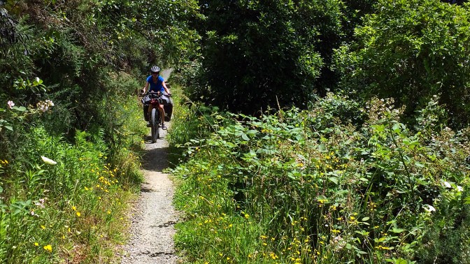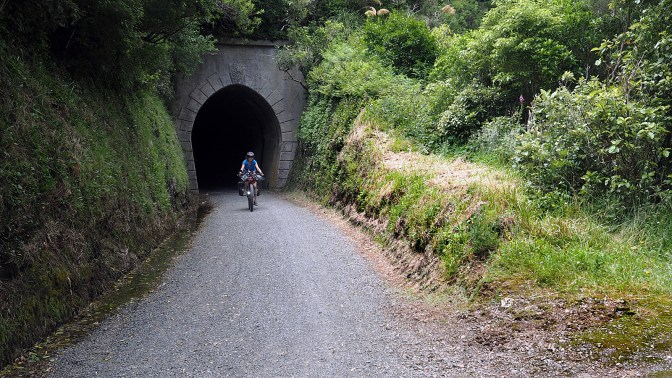 We made a quick stop at a supermarket to stock up on food for the next 24 hours and rode east on the Remutaka Cycle Trail, combining riverside bike trails with a historic rail trail over the Remutaka Mountain range.