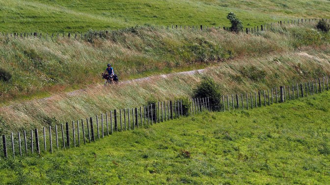 In the small town of Pohangina the lone café is closed for the holiday and there is no water tap at the community hall. We’ve already gone through three litres of water and are desperate for more. I see a woman outside in her yard and walk over to ask for water. She happily fills our bottles and says she’s impressed by our mode of travel.
