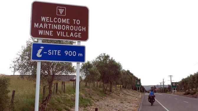 With only a 20 km ride from Featherston, we arrive in Wine Village mid-morning and set up camp in the local Top 10 Holiday Park, another $40-a-night patch of grass that continues to irk us but we have little choice.
