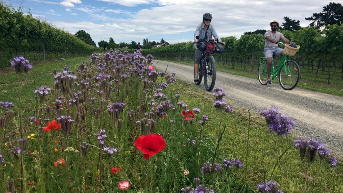 Armed with a winery map, we embark on a ride through the surrounding countryside to sample what Martinborough has to offer. We are not the only people with this idea as it is the middle of the Christmas holiday season and the small roads through the vineyards are busy with walkers and cyclists on a bacchanalian quest.