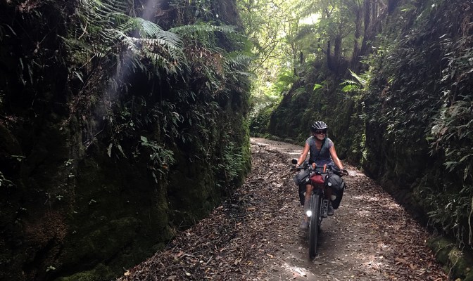 It took us a full day to ride 75 km from Blue Duck Station to Tamaranui on back roads, some gravel and some paved, to pick up the Timber Trail, another one of Cycle New Zealand’s Great Rides. It’s a two-day ride over the mountains of the Hauhungaroa Range in the Pureora Forest.