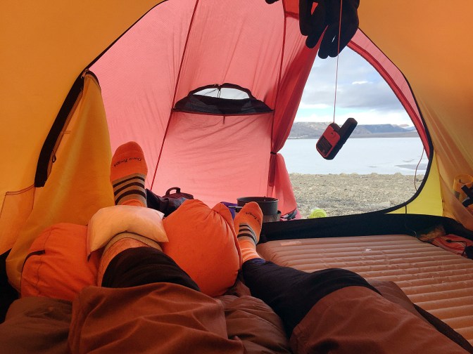 It’s been a week since we have seen the sun. Our boots are water logged. The last two days were more about survival than anything else. Not really fun but it feels good to have gotten through it. We hope for better conditions to cross the Manson Ice Field but some things are out of our control.