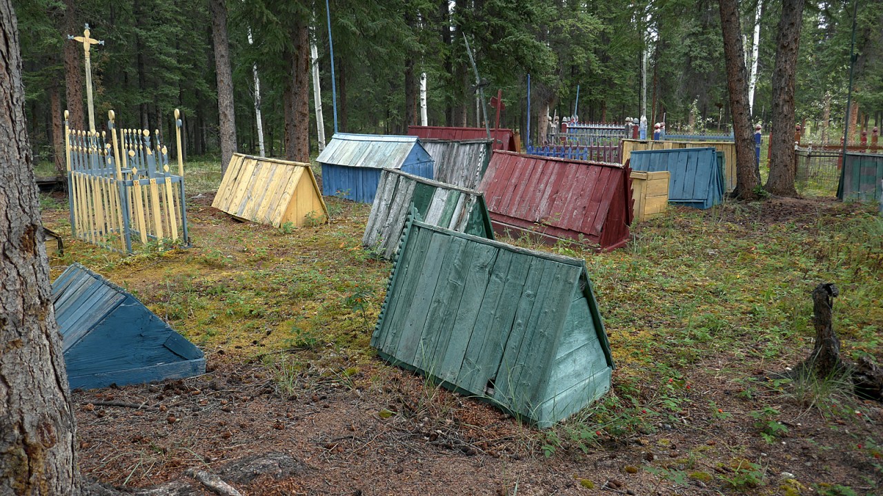 Cemetary with spirit houses at Fort Selkirk