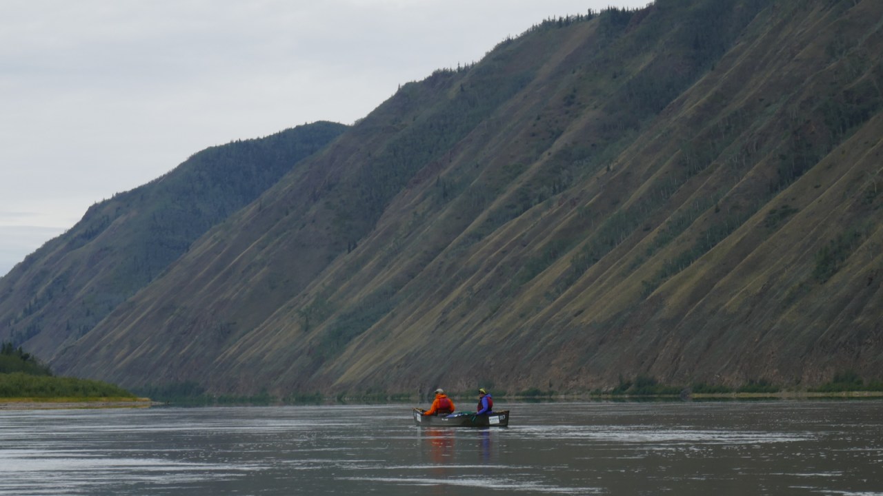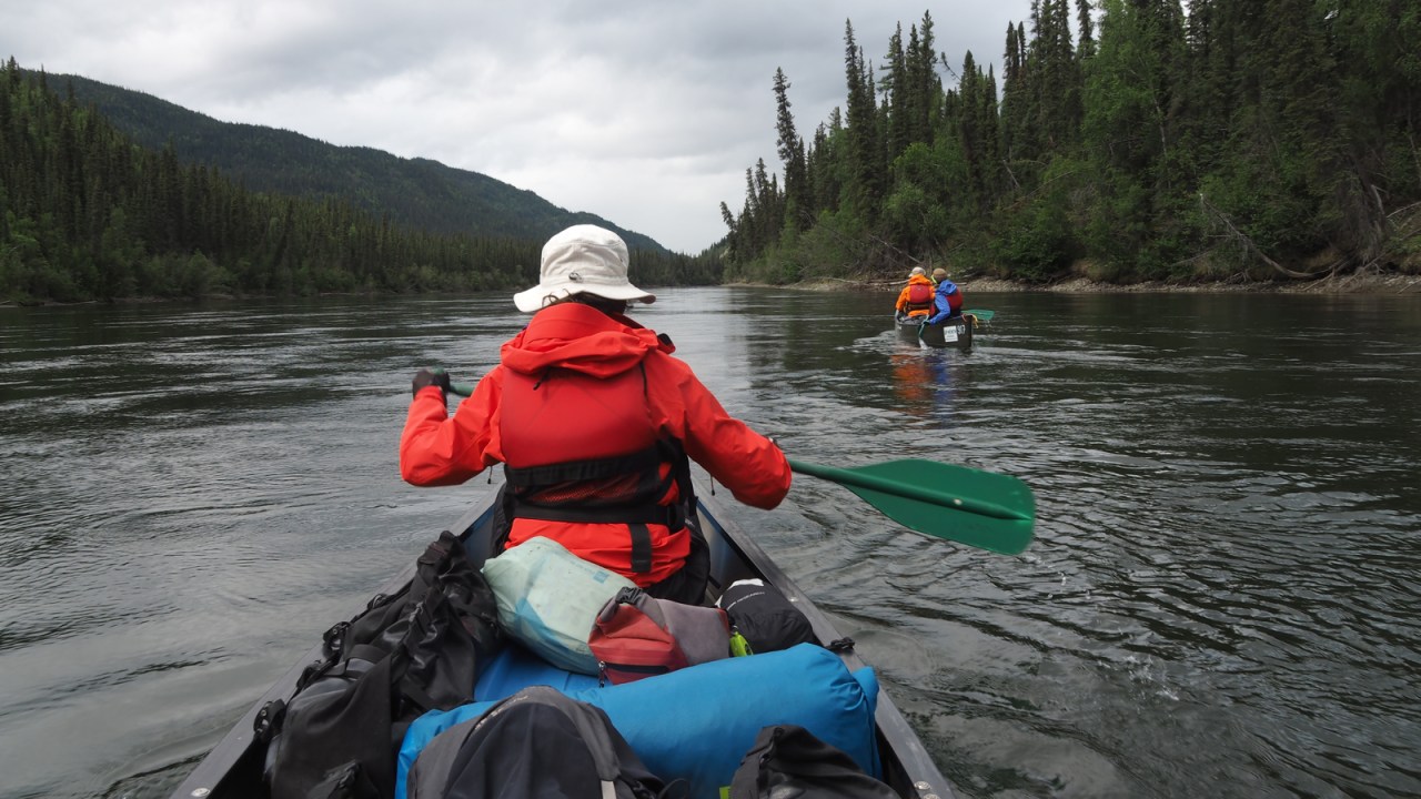 We pack the canoes and slip away down the river, happy to finally get out into the backcountry and let nature’s rhythm dictate our lives for a few weeks. It’s a familiar feeling, the soft, rhythmic dipping of the paddles, as we nearly silently travel down this liquid ribbon along the Big Salmon Range of the Pelly Mountains. Muscle memory is a wonderful thing as we quickly descend into wilderness with very little effort.