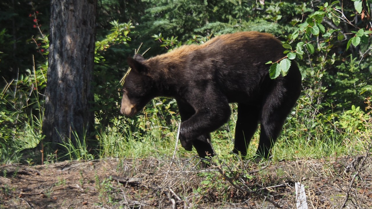 Black bear near a cabin at the White River
