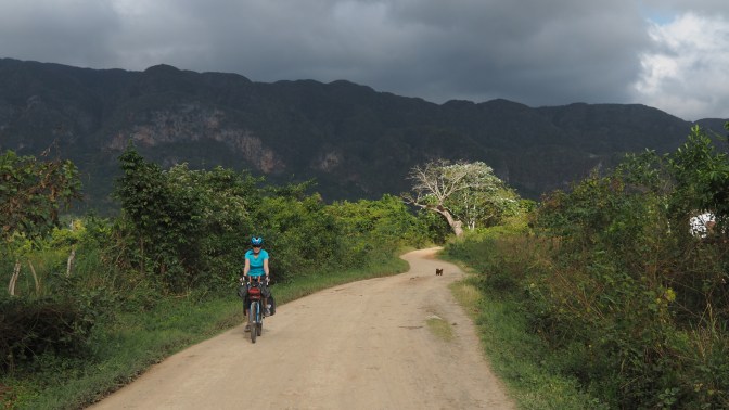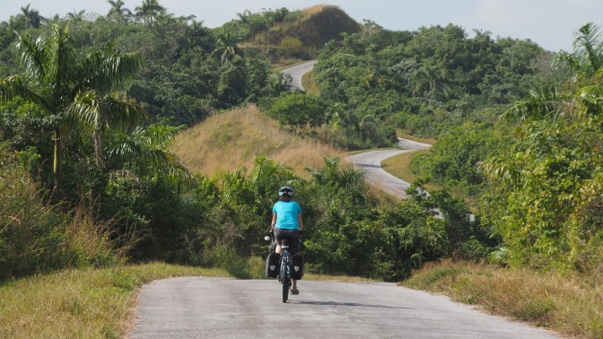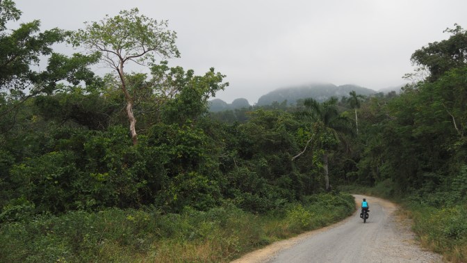 We continue on a small road through the mountains parallel to the highway between La Palma and Viñales. The absence of traffic continues to make this a cyclist’s dream come true. The road is in rough shape but the potholes are easily navigated on the bicycle.