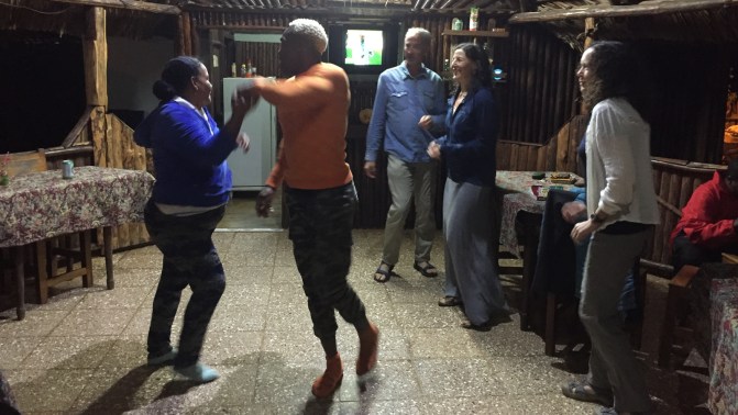 After dinner, the music is turned up and before long we are all doing our best mambo but we are put to shame by our hostess and the Cuban couple. We desperately, and unsuccessfully, try to keep up with the different moves but it’s great fun.