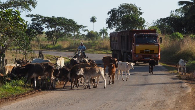 The Autopista is six-lane national highway between Havana and Pinar del Rio. Ironically, it has less traffic than the secondary road we were on before. Lack of car traffic is what makes Cuba a cyclist’s dream. The secondary and tertiary roads are generally in pretty bad condition and what little traffic is one them can not go very fast. I also think drivers are so used to sharing the roads and streets with slow-moving vehicles like bicycles, scooters, horse carts and what-have-you, they give us a wide berth and usually a friendly honk as they approach from behind.