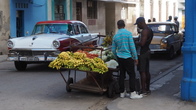 On the corner is a bakery and there are several small paladars as well as a high-end restaurant and a guy selling produce from a hand cart. This is the contrast that is Cuba and we enjoy exploring this part of the city.