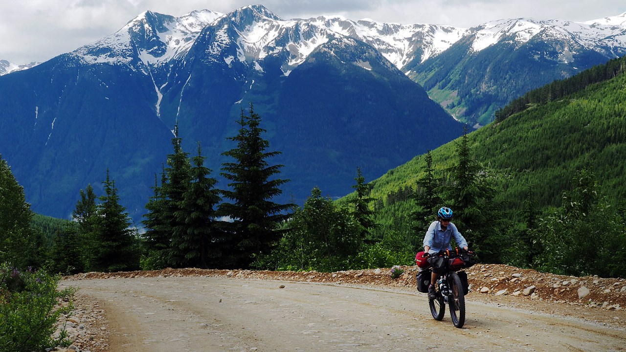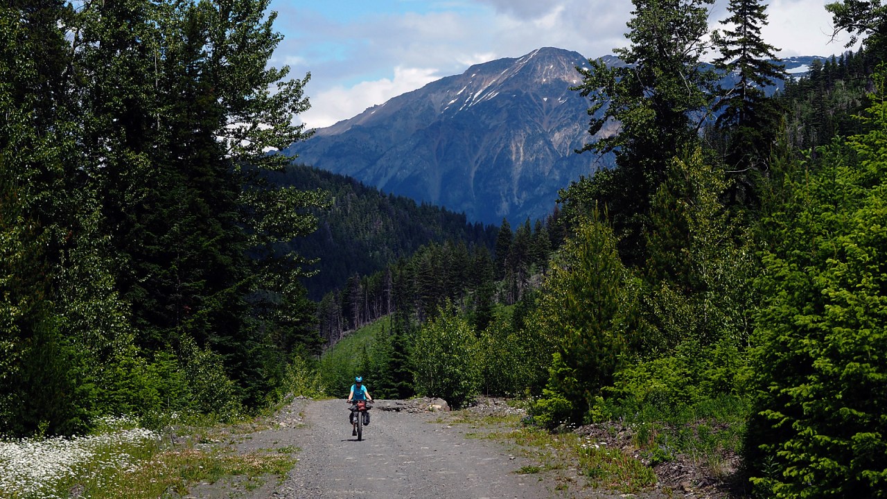 The road to Bralorne is paved, making the six-kilometre-long climb a little easier. Once we’re on the ridge, there are spectacular views south looking into the Hurley River canyon.