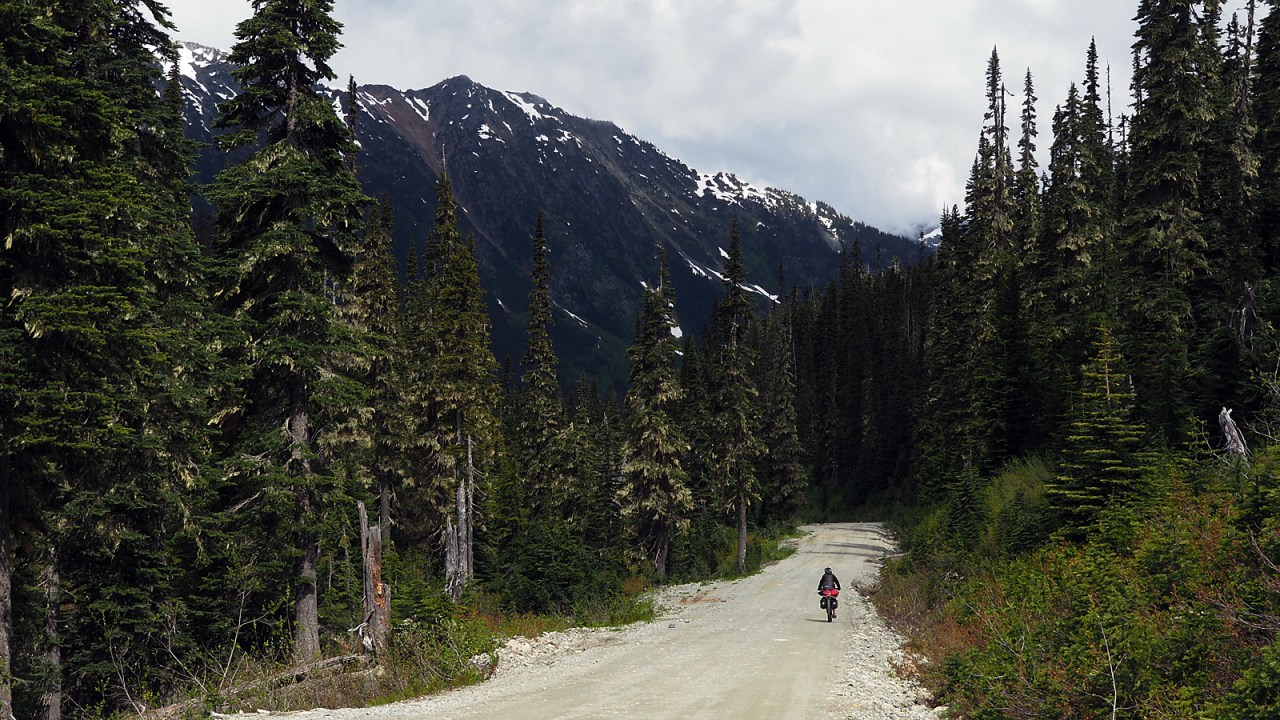 Thankfully, it doesn’t rain on us for the last five kilometres down to the valley bottom. The eight kilometres along the Lillooet River seem endless after the long, fast descent from Railroad Pass but we eventually get to the car, happy it’s not raining and thinking about getting to Pemberton for a hot meal.