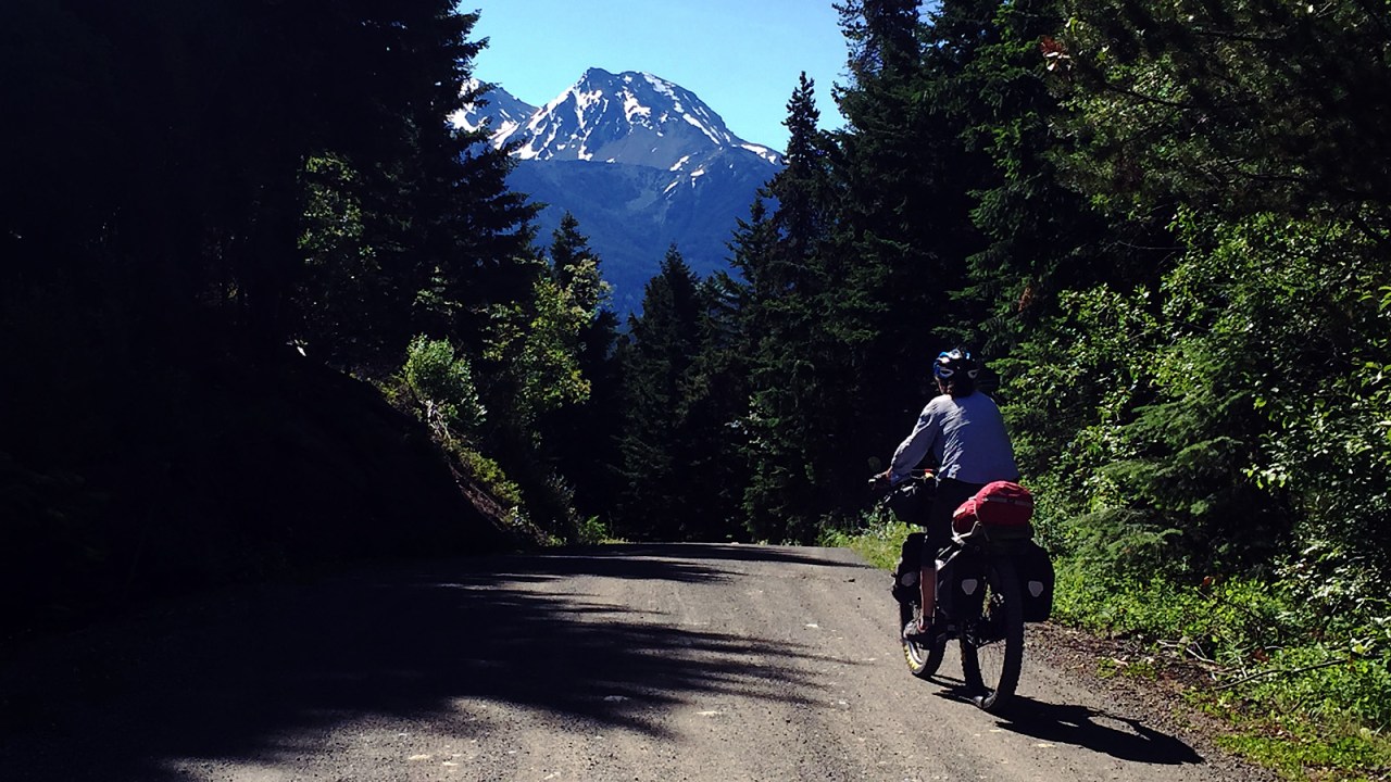 We had started our trip two days earlier. We left the car on the Lillooet River Road near the end of Pemberton Meadows, loaded the bikes and headed up the Hurley Forest Service Road.