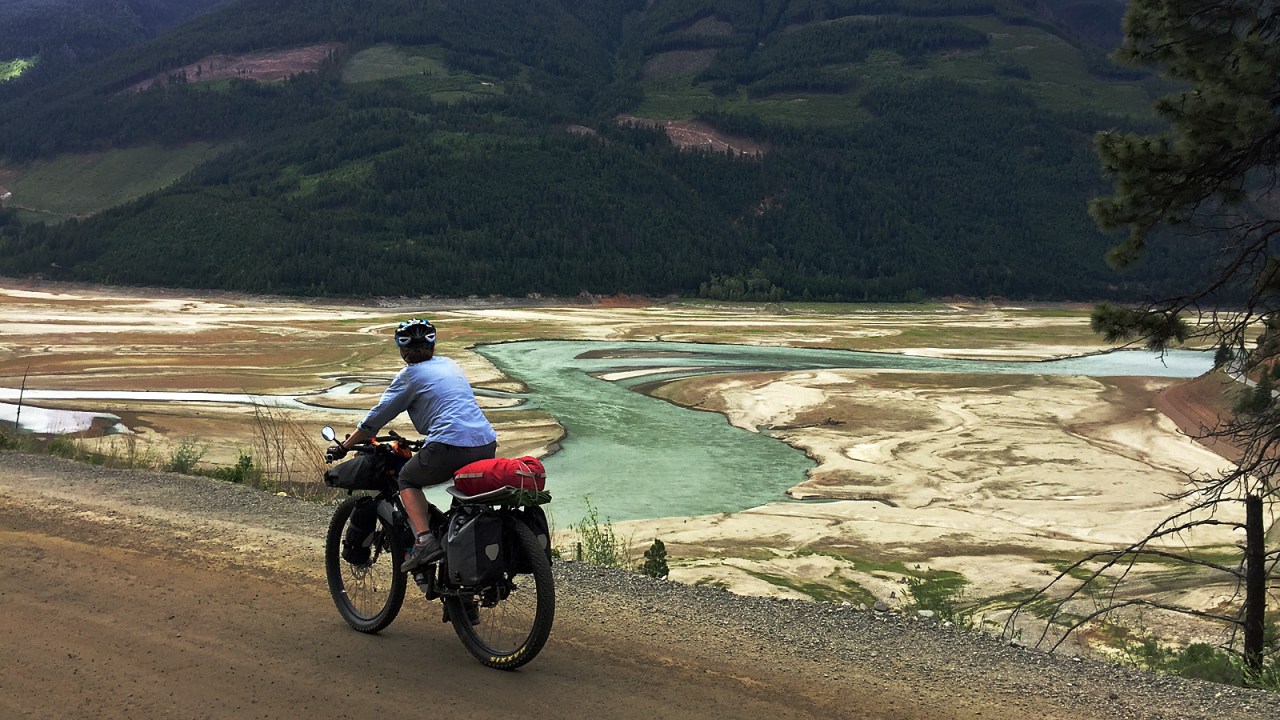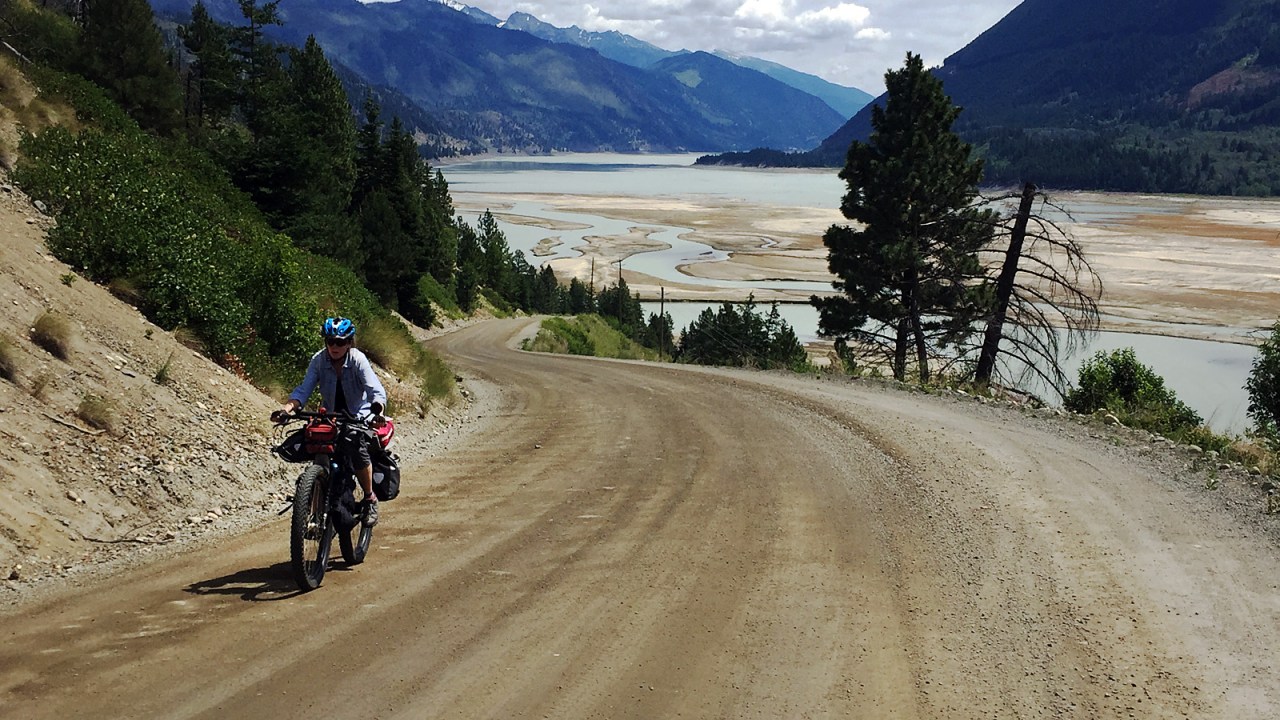 Downton Lake eventually comes into view and we ride our brakes on the steep descent to the bridge across the Bridge River. The river was dammed in the 1940s and 50s as part of a massive hydro project creating Downton Lake, Carpenter Lake and enlarging Seton Lake. The water from the river is used three times before it flows into the Fraser River, and generates six to eight per cent of British Columbia’s power.