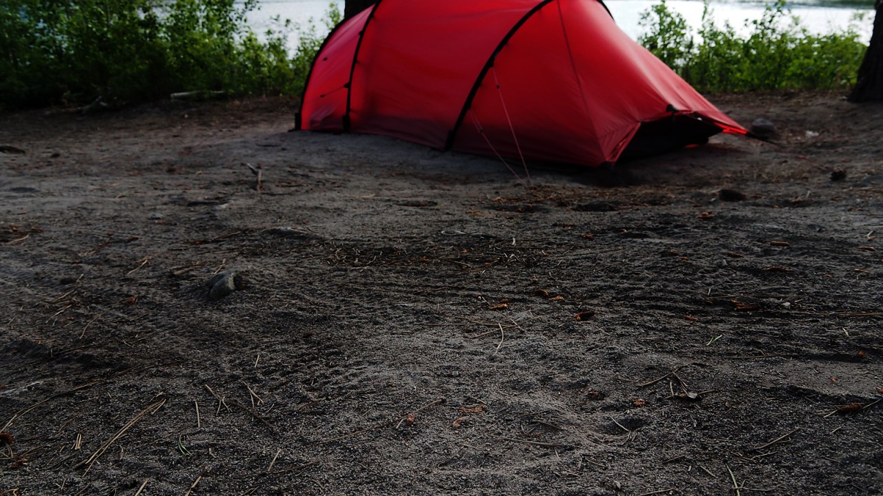 We chat with the other two campers while watching the bear slowly walk and swim away until it’s out of sight. It’s around 7 p.m. and we return to our tent to make dinner. Afterwards, we diligently hang all our food, pots and toiletries from a tree branch four metres up.