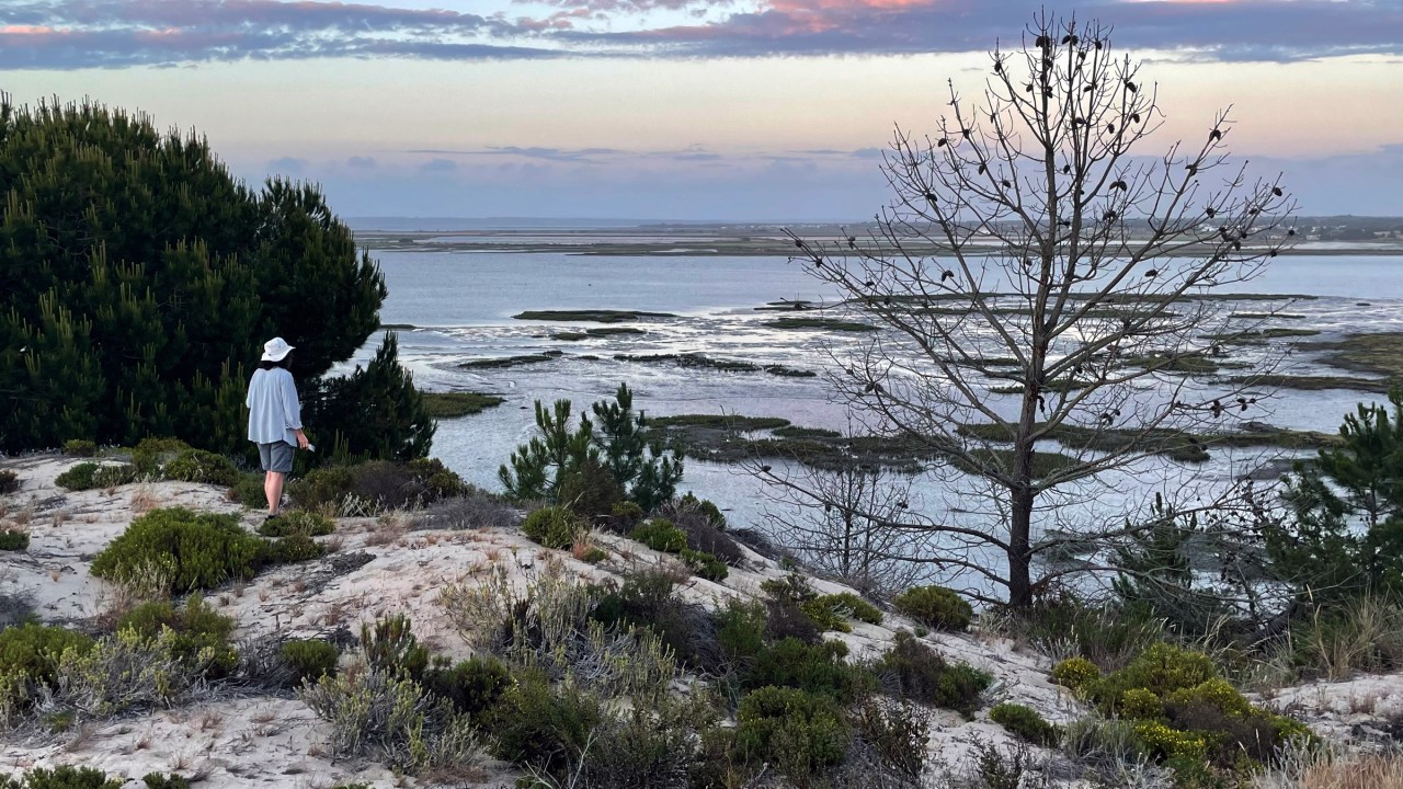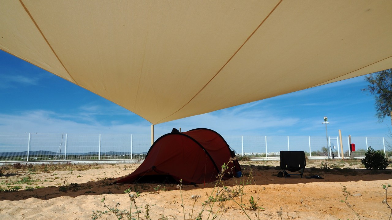 After another ferry from Setúbal to a long, sandy spit we decide to just camp in the dunes. We picked up some food at a small store, filled our water bladder and found a gorgeous, private spot 75 metres off the road among the pines with a view of the water. Bikepacking Nirvana.