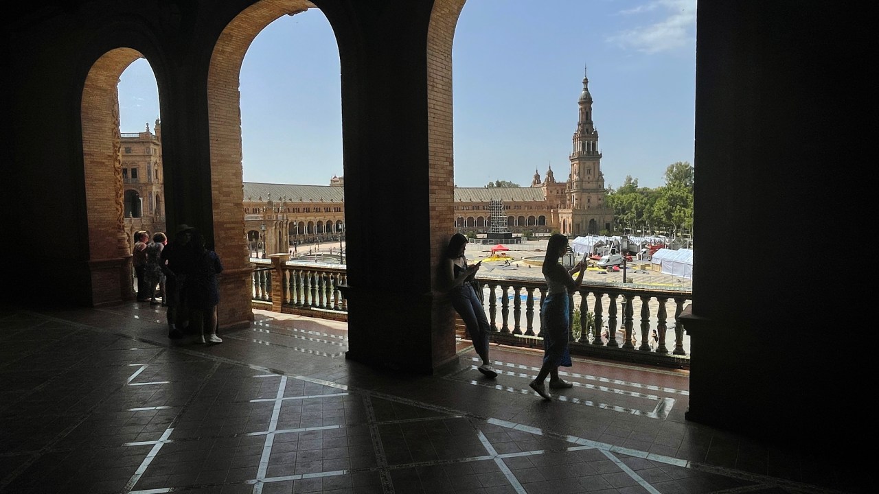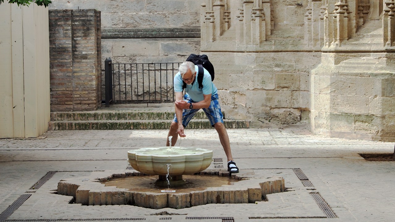 Our strategy for Sevilla, also known as the frying pan of Spain, was to go out early in the morning for a couple of hours to see the sights, spend the afternoon in the apartment resting and keeping cool before heading out again into the cooler evening for dinner, entertainment and sightseeing. Okay, cooler evenings is a bit of a misnomer. At 10 p.m. it was still 37 degrees with all the stone streets and buildings radiating the stored heat from the day. But at least the sun was down and all the patios had systems rigged up to spray a fine mist of water every 30 seconds, making it bearable to sit and have a cold drink, or several. There just didn’t seem to be enough liquid around to quench our constant thirst.